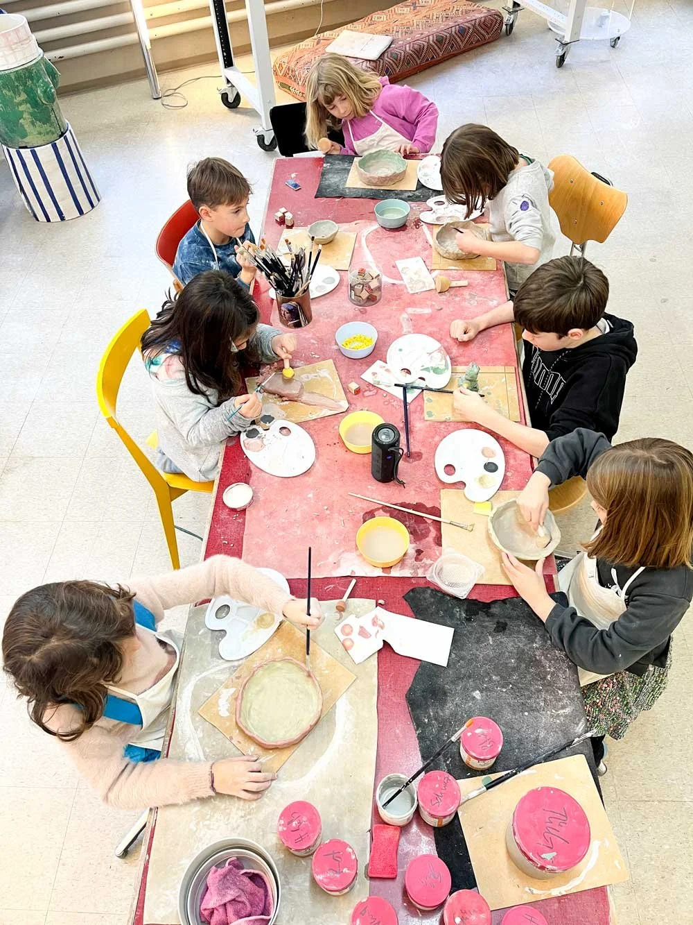 Du malst all deine getöpferten Objekte an bevor sie in den Brennofen kommen. Deine Objekte kannst du in ca 2 Wochen nach Hause nehmen.